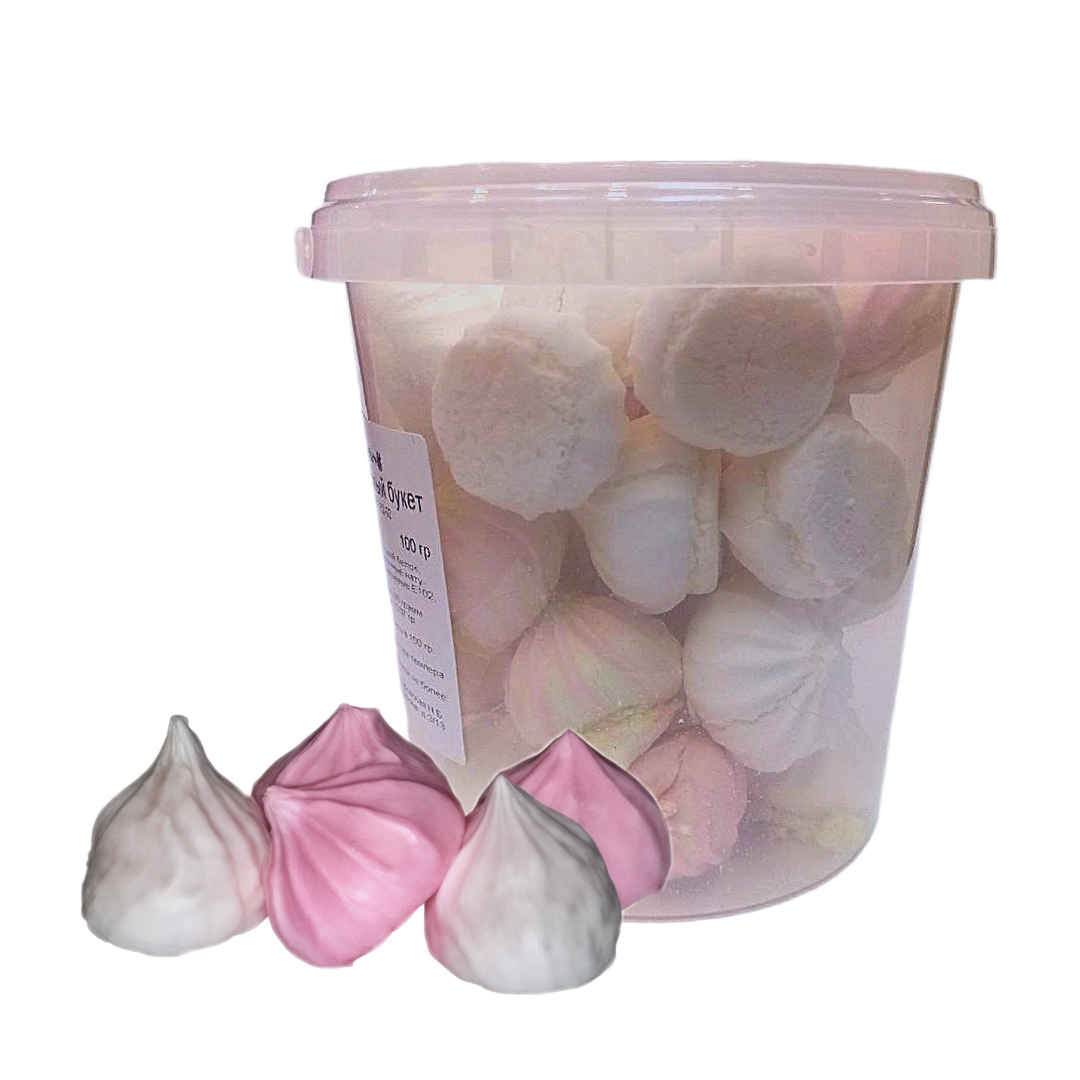Безе фруктовое, объем - 1 литр, вес - 100 гр. Диаметр около 4 см.