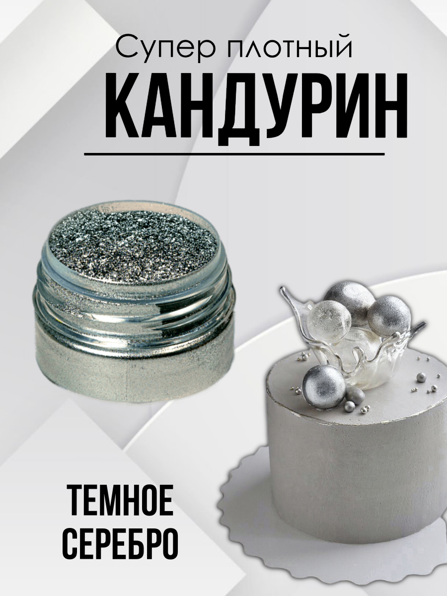 Краситель пищевой 2 в 1 жирорастворимый и водорастворимый. Идеально подходит для работы с мастикой, кремом и шоколадом (велюр в том числе). А так же его можно использовать для работы с аэрографом. Серебряный кандурин плотный, при поверхностном окрашивании позволяет получить плотную серебряную поверхность. Подходит как краситель для раскрашивания шоколадных фигурок, для надписей