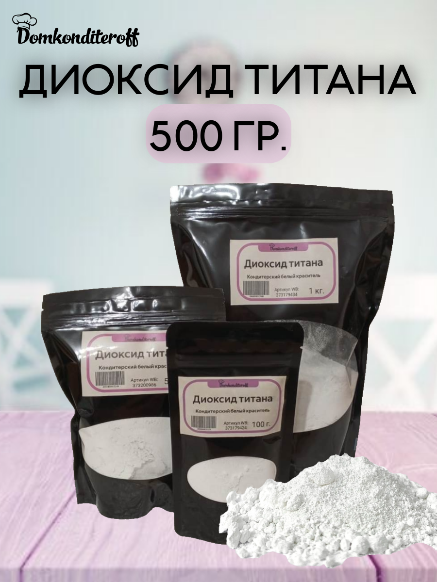 Диоксид титана (Е171) - это пищевой кондитерский краситель, который используют в продуктах питания для придания им белого цвета. В небольших количествах он безопасен для человека, устойчив к химическому воздействию, обладает хорошими отбеливающими качествами. Не имеет вкуса и запаха. Подходит для окрашивания продуктов на водной и жировой основе. В кулинарии применяется для нейтрализации желтого оттенка у крема, мастики и леденцов. Леденцы с диоксидом титана становятся не прозрачными, легче окрашиваются. Зачастую, используется при приготовления шоколада, придавая ему белоснежный цвет. Порошок не влияет на запах и вкус продуктов. Количество диоксида титана должно составлять 0,01-1% от массы готового продукта. Обычно порошок аккуратно засыпают, после чего следует тщательно перемешать массу. Для лучшего растворения, разбавьте его в небольшом количестве воды. За счет мелкодисперсности его успешно применяют как краску для шоколада. Для работы с кремчиз или масляным кремом добавьте порошок в количестве 4-5 г на 200 г продукта. Применение пищевой добавки не ограничивается только пищевой отраслью, им также красят пчелиный воск. На основе диоксида изготавливают косметику, краску для отбеливания зубов и зубную пасту, средства личной гигиены. Такой краситель отлично подойдет для домашнего мыла высочайшего качества! В процессе варки добавьте в мыльную основу колер на основе продукта для придания белого оттенка. Для выбеливания мастики в состав заливают несколько капель диоксида разведенного в глицерине. Такая мастика очень эластична и из нее получаются отличные топперы.