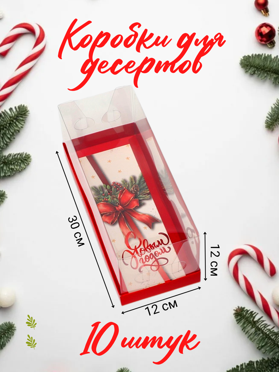 Комплект коробок с прозрачной крышкой под рулет «С Новым годом», 10 шт