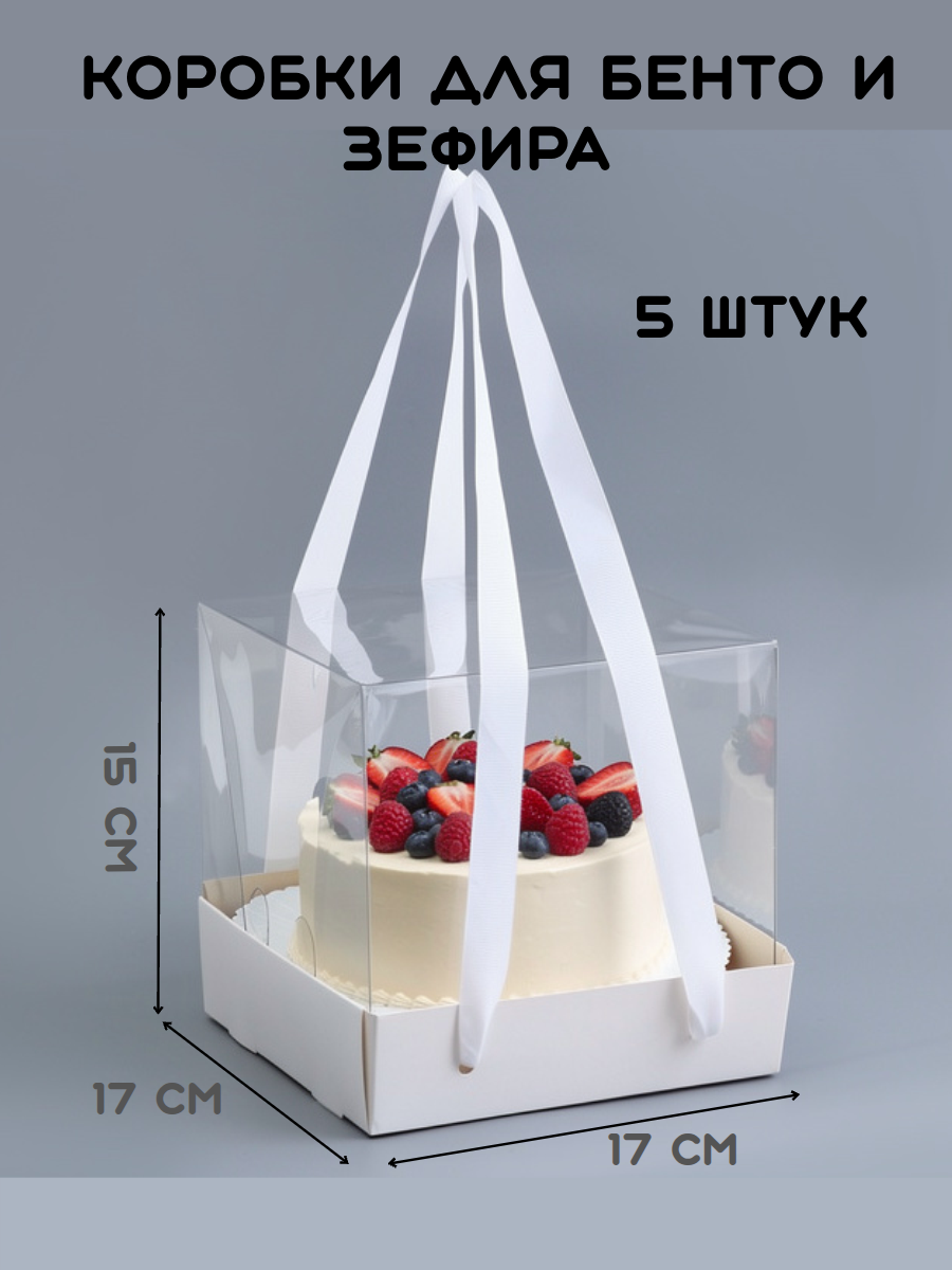 Набор коробок под бенто-торт, кулич или пасху с прозрачной крышкой и ручками – это компактная упаковка для небольшого десерта. Её чистый цвет и обзорная крышка делают содержимое главным акцентом. В комплекте 5 коробок с ручками из лент