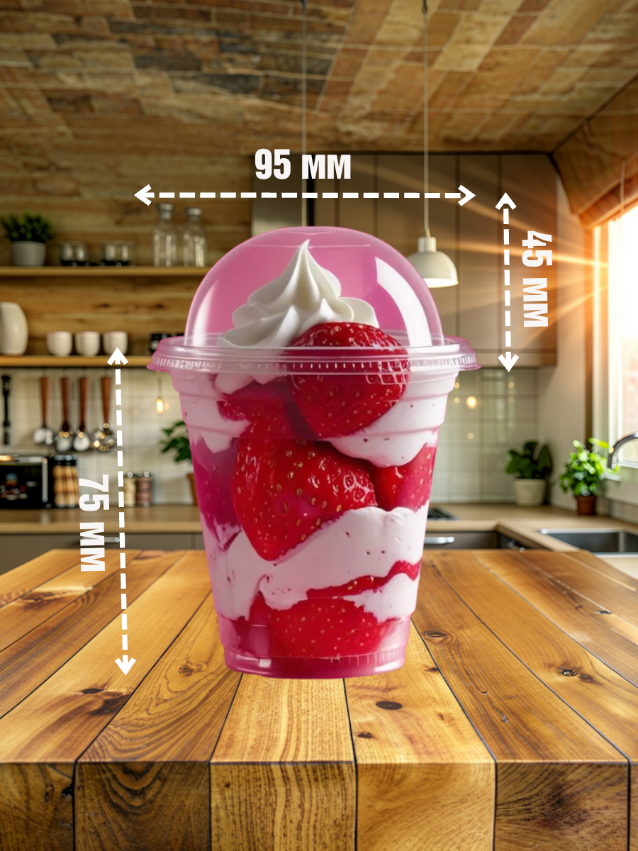 Стакан для трайфла 200 мл с купольной крышкой 18 шт. в упаковке. Диаметр верха - 95мм. Пластмассовые одноразовые стаканы с купольной крышкой 18 штук. Бокалы одноразовые объемом 200 мл изготовлены из плотного, высококачественного пластика - ПЭТ (полиэтилентерефталат), который не мнется при использовании и безопасен для жизни и здоровья. Прозрачные пластиковые стаканы для трайфлов идут в наборе с глухими крышками, в центре крышки отверстия нет. Стакан-шейкер с крышкой удобен для десертов, трайфлов, мини-тортов, орехов, цукатов, фруктов, джемов, желе, мармелада, клубники в шоколаде, предметов ручной работы, бомбочек и соли для ванны. Приобрести маленькие контейнеры можно для холодного кофе или чая, лимонада, молочных коктейлей, десертов, фруктовой нарезки. Максимальная температура жидкостей 60 градусов. Часто используется для красивой упаковки ягод. Стаканы с крышкой для десертов станут прекрасным выбором для сервировки стола, вместе с другой посудой как одноразовой, так и многоразовой, на пикнике, и на празднике дома. Порционные стаканы отлично подойдут для кейтеринга, красивого и оригинального оформления любого праздника, для настроения и просто для души. Очень легко приготовить вкусные и полезные порционные десерты дома для семьи, для любимого человека, для детей. Объем: 200 мл. Количество: 18 стаканчиков + 18 купольных крышек без отверстия.