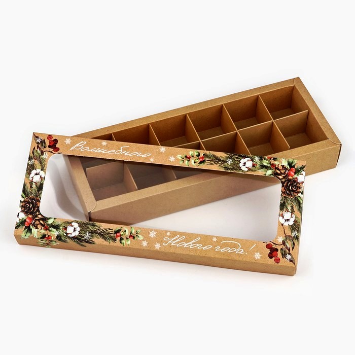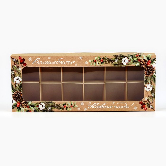 Новогодняя коробка «Ботаника» – идеальный способ оригинально подарить 12 любимых конфет! Удобные размеры (26.5х10.5х3.5см) позволяют легко упаковать сладости и сохранить их свежесть. Экологичный материал коробки заботится о вашем здоровье и окружающей среде. Яркий дизайн добавит праздничного настроения вашему дому и порадует близких. Коробку можно использовать повторно как контейнер для хранения мелочей после праздников!