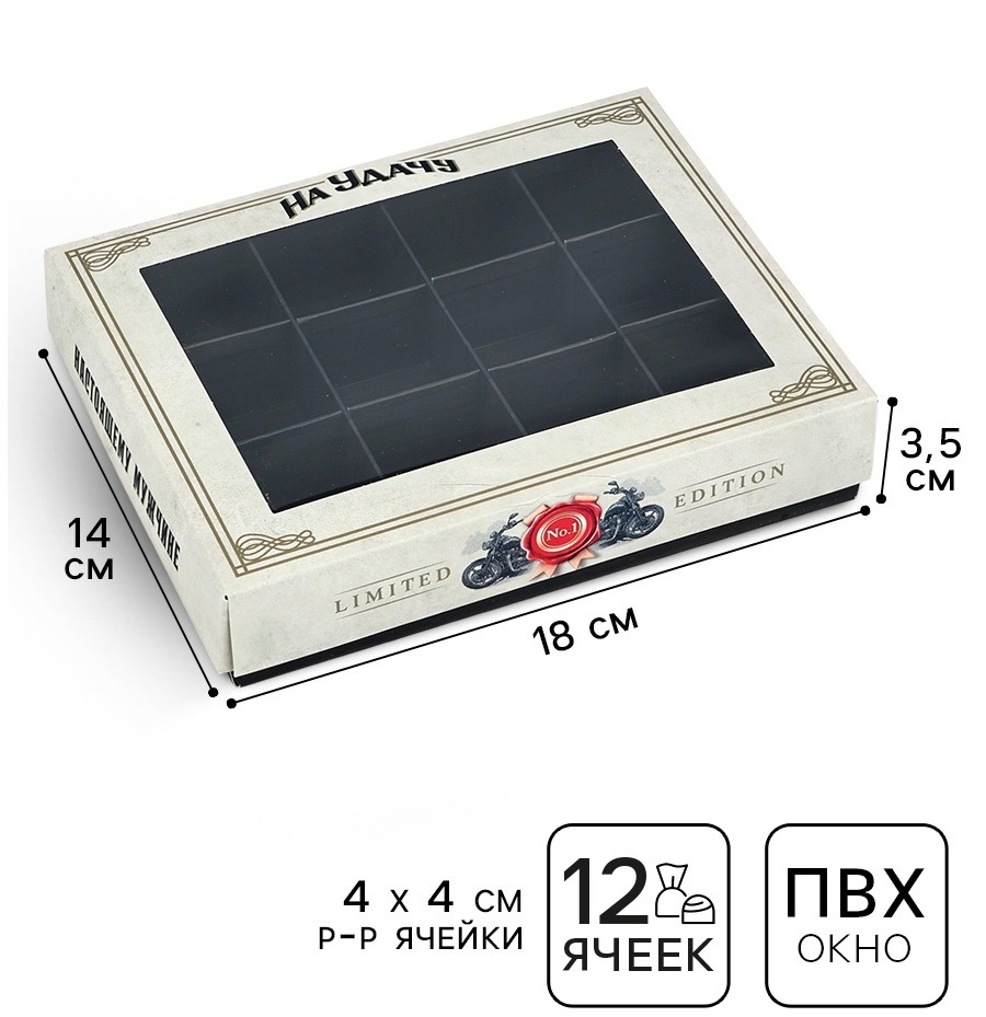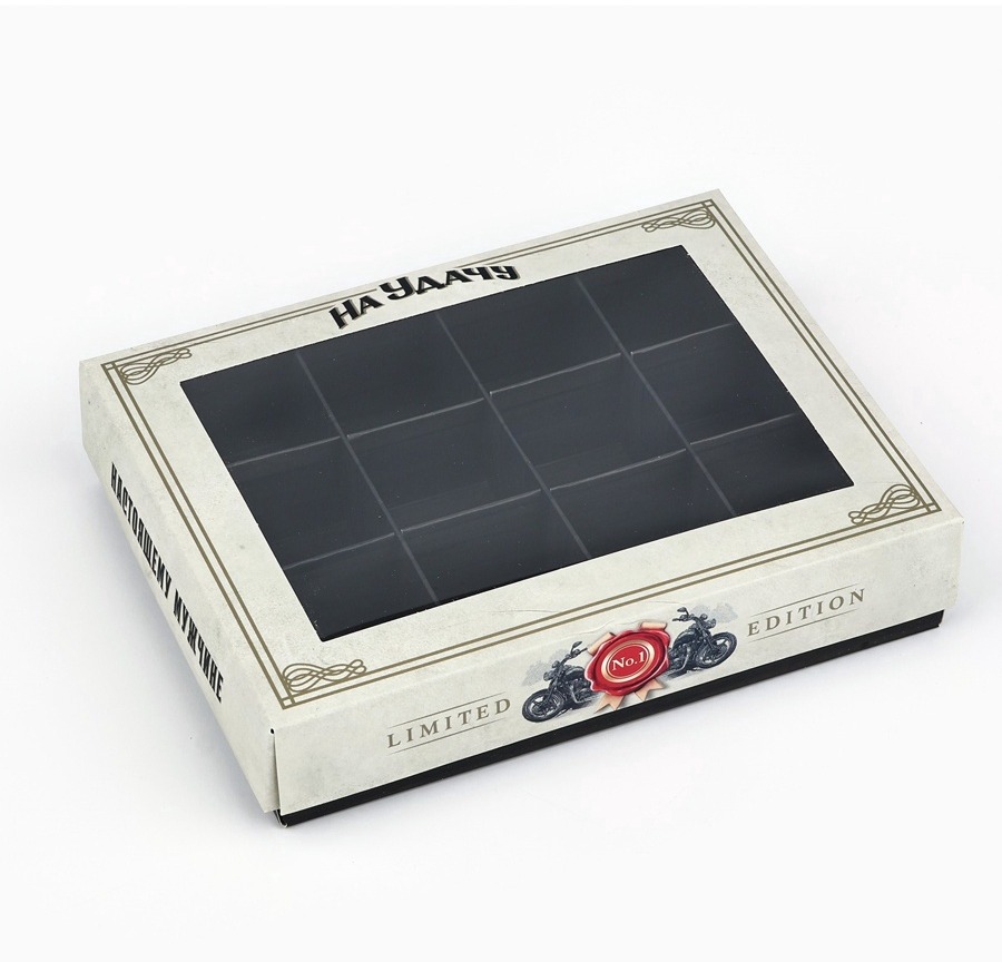 Сохрани сладкие моменты с заботой. Подарочная коробка на 12 конфет «Для настоящих мужчин» – стильный выбор для упаковки шоколадных сюрпризов и других сладостей. Идеальна для особенных случаев, таких как 23 Февраля.