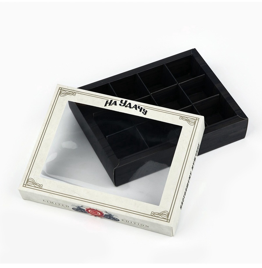 Универсальность использования: Подходит для упаковки шоколада, конфет и десертов, что делает эту коробку отличным решением в любой ситуации, будь то персональный подарок или массовое мероприятие.