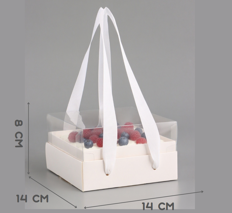 - Миниатюрный размер для компактного десерта: Габариты 14×14×8 см рассчитаны на маленький торт-бенто, несколько пирожных или капкейк. Коробка удобна для вручения как личный, порционный подарок.