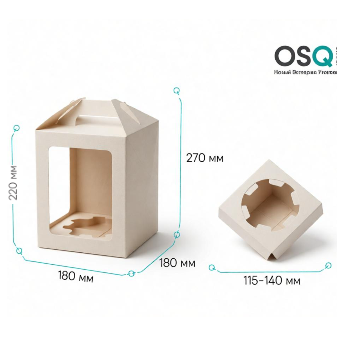 Диаметр отверстия в ложементе - 11.2 - 14 см. ложемент подходит для двух диаметров куличей 110 и 134 мм Коробка для куличей, тортов и пирожных ForGenika JUMPL II Window White Выполнена из высококачественного белоснежного целлюлознного картона с кремовым оборотом и улучшенными характеристики плотности и прочности, панорамные окна