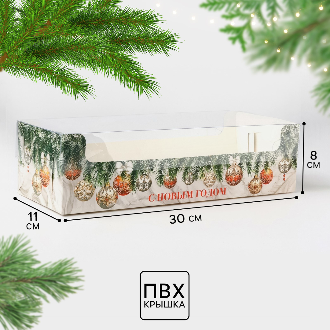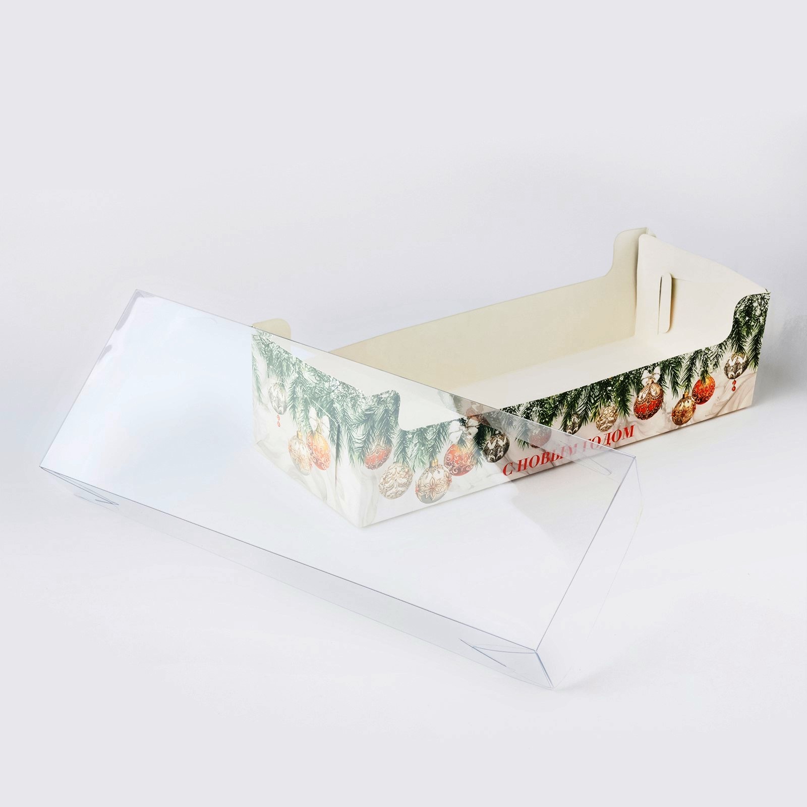 Эта яркая коробка станет отличным подарком и удобным помощником на кухне! В ней удобно хранить и подавать не только рулеты, но и нежные рождественские штоллены, воздушные кексы, вкуснейшие мотившие трайфлы или даже домашние моти. А праздничный дизайн напомнит вам о волшебстве Нового года даже посреди зимы! Размеры (30x8x11 см) идеально подойдут для порционных десертов. Приятная новость – весит всего лишь 50 г, так что ее легко взять с собой! Прямоугольная упаковка с веревочными ручками под зефир, рулет, муссовые пирожные, моти и т.д.
