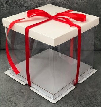 Коробка для торта Премиум прозрачная белая с пьедесталом 23.5х23.5х22