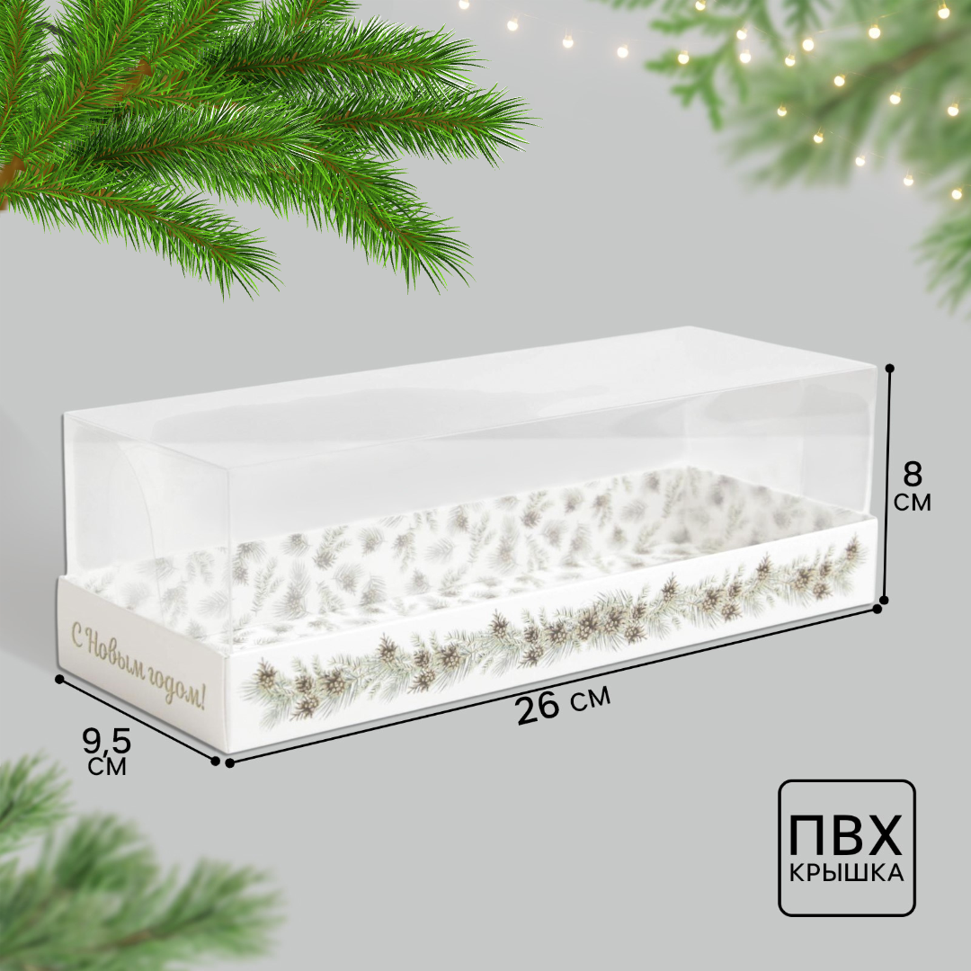 Прямоугольная новогодняя коробка - упаковка для муссовых пирожных, моти, рождественского штоллена, рулета и т.д.