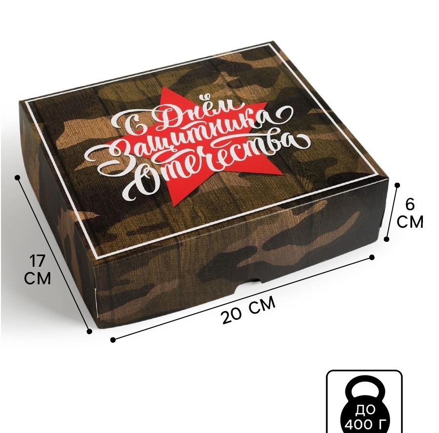 Коробочка для кондитерских изделий «С днём Защитника Отечества», 17 х 20 х 6 см