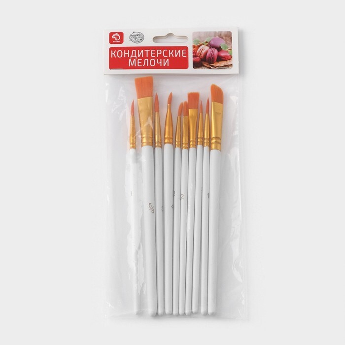 В комплект входят кисти разных форм, изготовленные из мягких синтетических волокон, обеспечивающие равномерное нанесение глазури, крема, айсинга и других декоративных элементов. Эти кисти подходят для работы с различными видами глазури, кремов, сиропов, позволяя создавать разнообразные эффекты на выпечке. Они легко очищаются благодаря синтетическим волокнам, которые не впитывают влагу и загрязнения. Безопасны для контакта с пищей и не вызывают аллергии. Компактные размеры и удобная форма кисточек делают их хранение и переноску простыми и удобными.