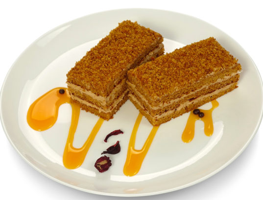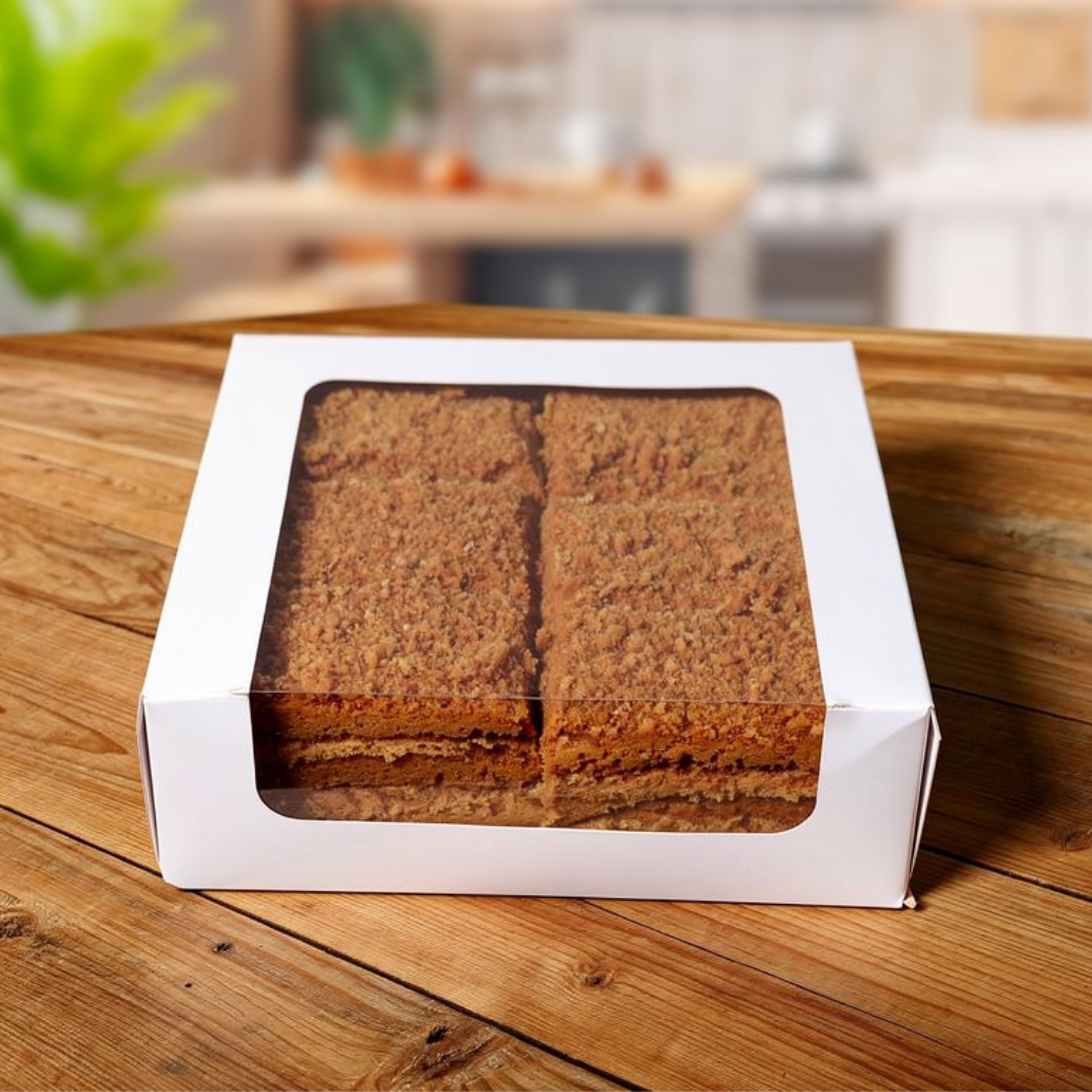 Упаковка из 6 пирожных - карамельный медовик. Общий вес 800 гр.
