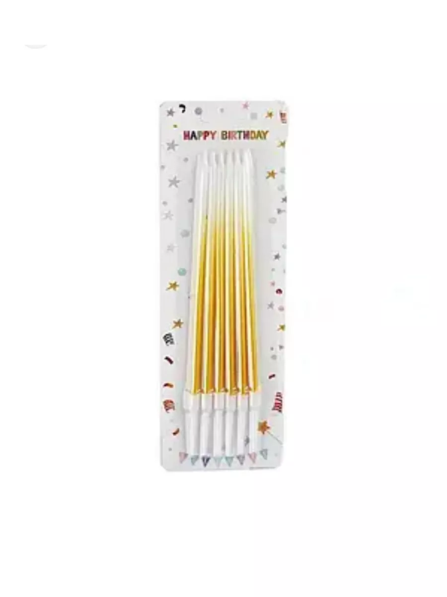 Набор свечей для торта «Праздник" бело-золотые. Размер: 16 см. Длина указана с учетом фителя. Свечи используются для украшения праздничного торта или кекса. Не подлежат повторному использованию. В упаковке 6 шт.