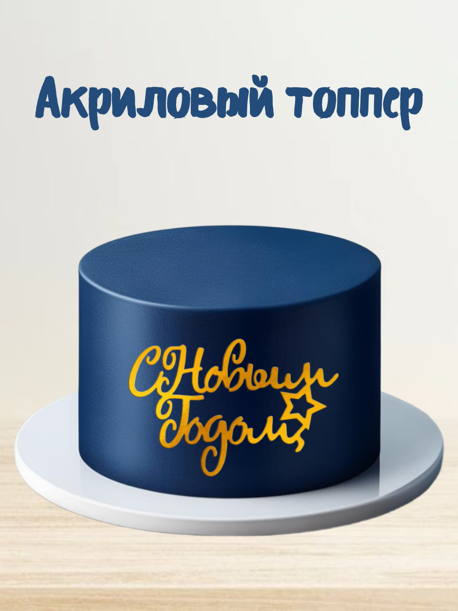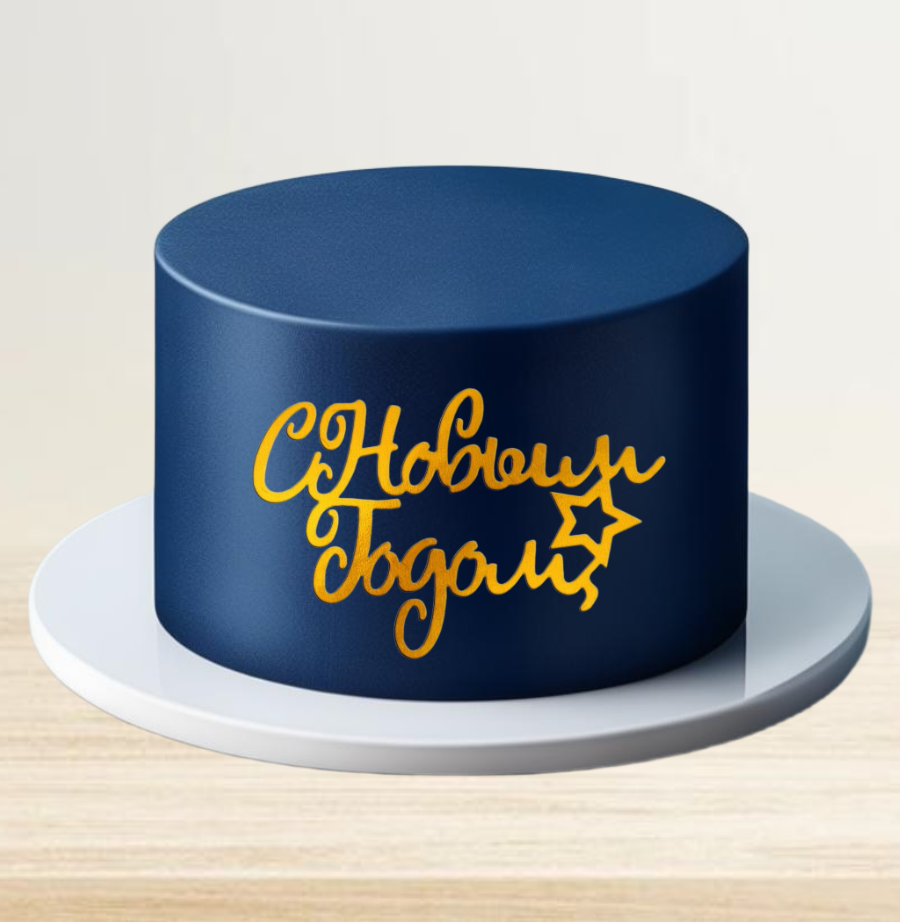 Размер топпера: 12 х 8 см. Надпись для торта акриловая без палочки зеркальная С новым годом