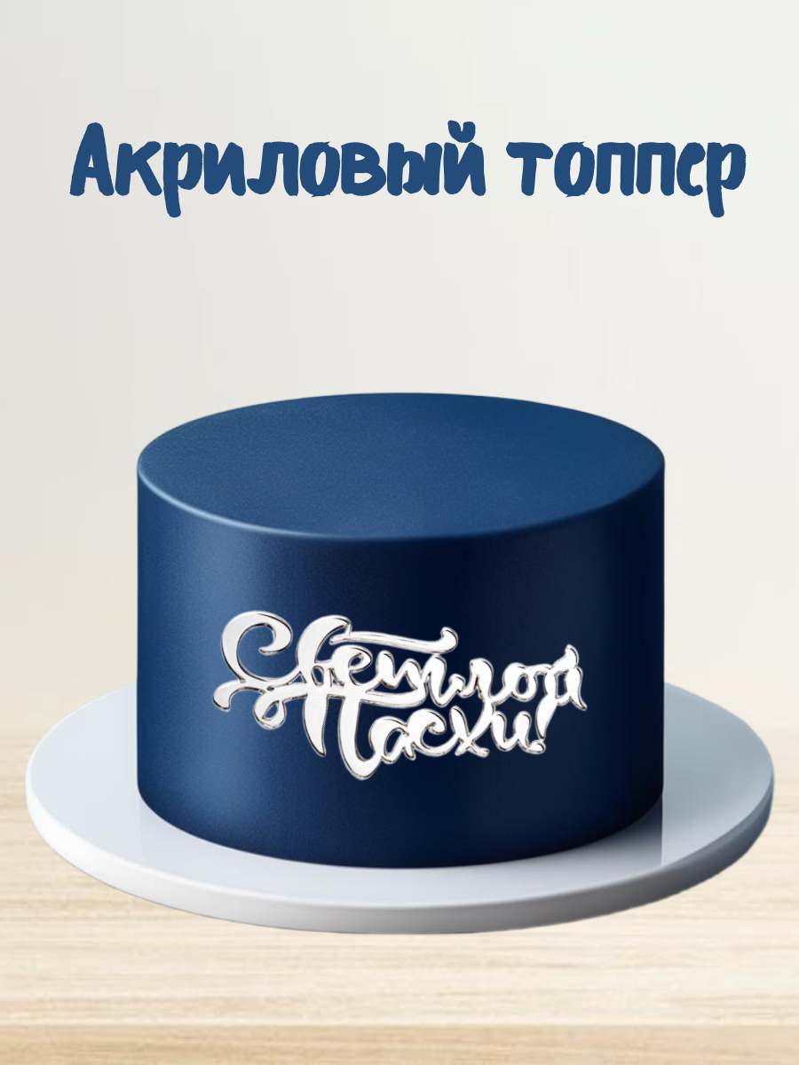 Размер топпера: 9 х 4.5 см Надпись для кулича и пасхи акриловая без палочки зеркальная