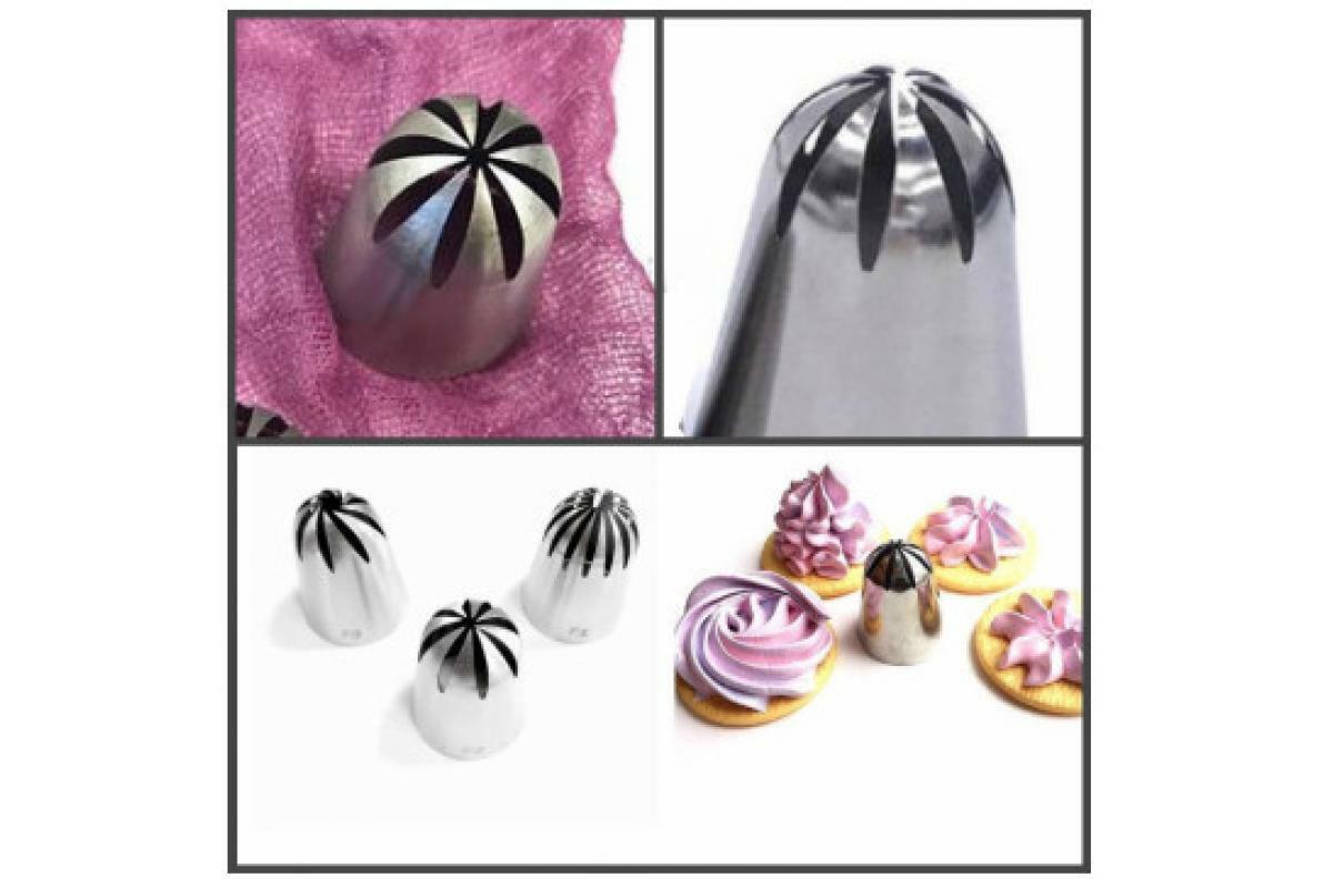 Насадка для кондитерского мешка f2 Закрытая звезда предназначена для украшения десертов. Большая кондитерская насадка номер 903 идеально подойдёт для отсадки зефира. Насадка Роза винтовая используется для оформления кондитерских изделий, работы с кремом, украшения большими цветами, крупных роз на торт, на маффины. С помощью данной крупной насадки легко получить капкейки с идеальной аппетитной шапочкой. Так же подойдёт для декорирования закусок густыми соусами и маслом. Крем может иметь разный вид, в зависимости от силы нажатия на кондитерский мешок, угла наклона насадки и характера движения руки. Насадки предназначены для нанесения на выпечку необычных украшений из крема.