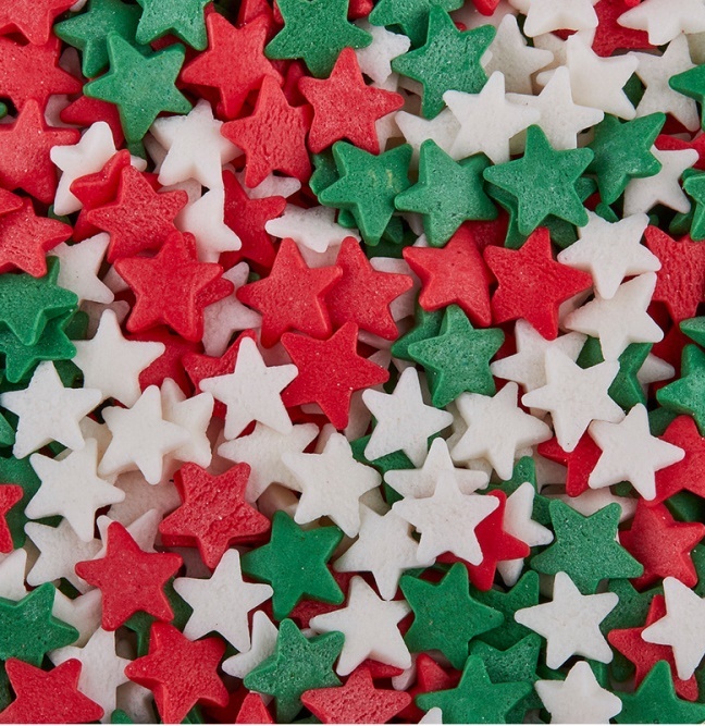 Посыпка сахарная кондитерская для декорирования кондитерских изделий. Состав: сахар, пшеничная мука, рисовая мука, декстроза, пальмовое масло, носители (Е1422, целлюлоза), загустители (Е1400, Е466, Е415), эмульгатор (лецитин соевый), глазирователь (шеллак) Е555, Краситель (Е102, Е110,Е122, Е129,…