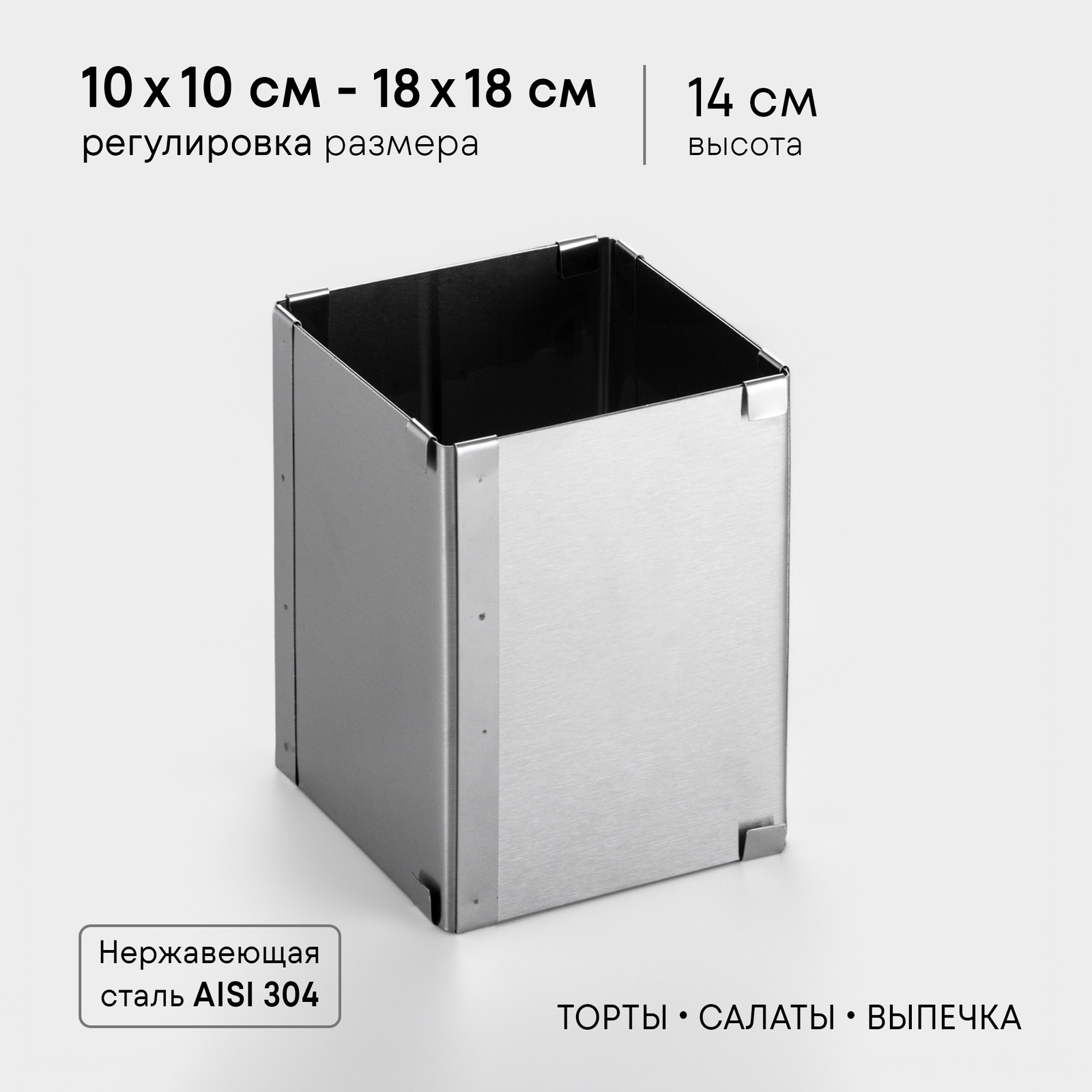 Раздвижная рамка для выпечки Квадрат- трансформер, 10х10 - 18х18 см. Регулируемая форма предназначена для выпечки и сборки тортов. Отрегулируйте размер, поставьте на силиконовый коврик или пекарскую бумагу и выпекайте. Форма также подходит для приготовления десертов без выпечки: для муссовых тортов