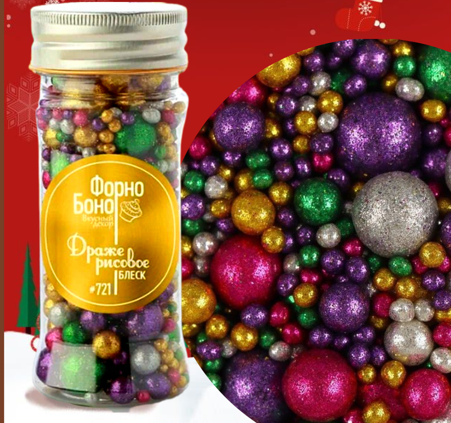 Шоколадные хрустящие шарики кранч изготовлены на основе высококачественной шоколадной глазури и покрыты пищевыми блестками. Потрясающий новогодний декор для тортов и пирожных