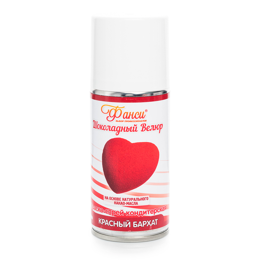 Готовый велюр в виде спрея. Предназначен для создания бархатной поверхности тортов, пирожных и изделий из шоколада и глазури.