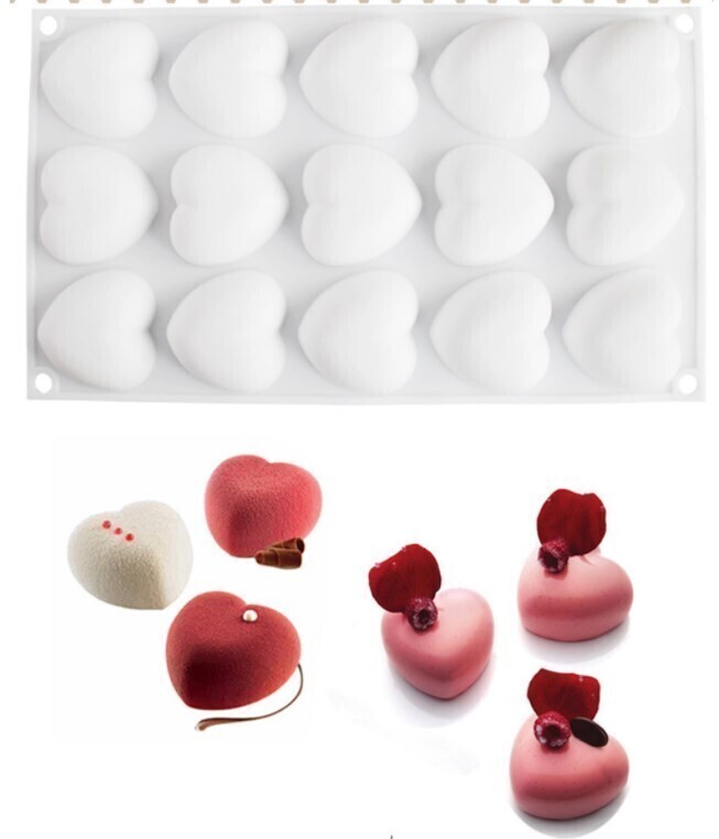 Силиконовая форма для мусса "Сердце" 15 ячеек