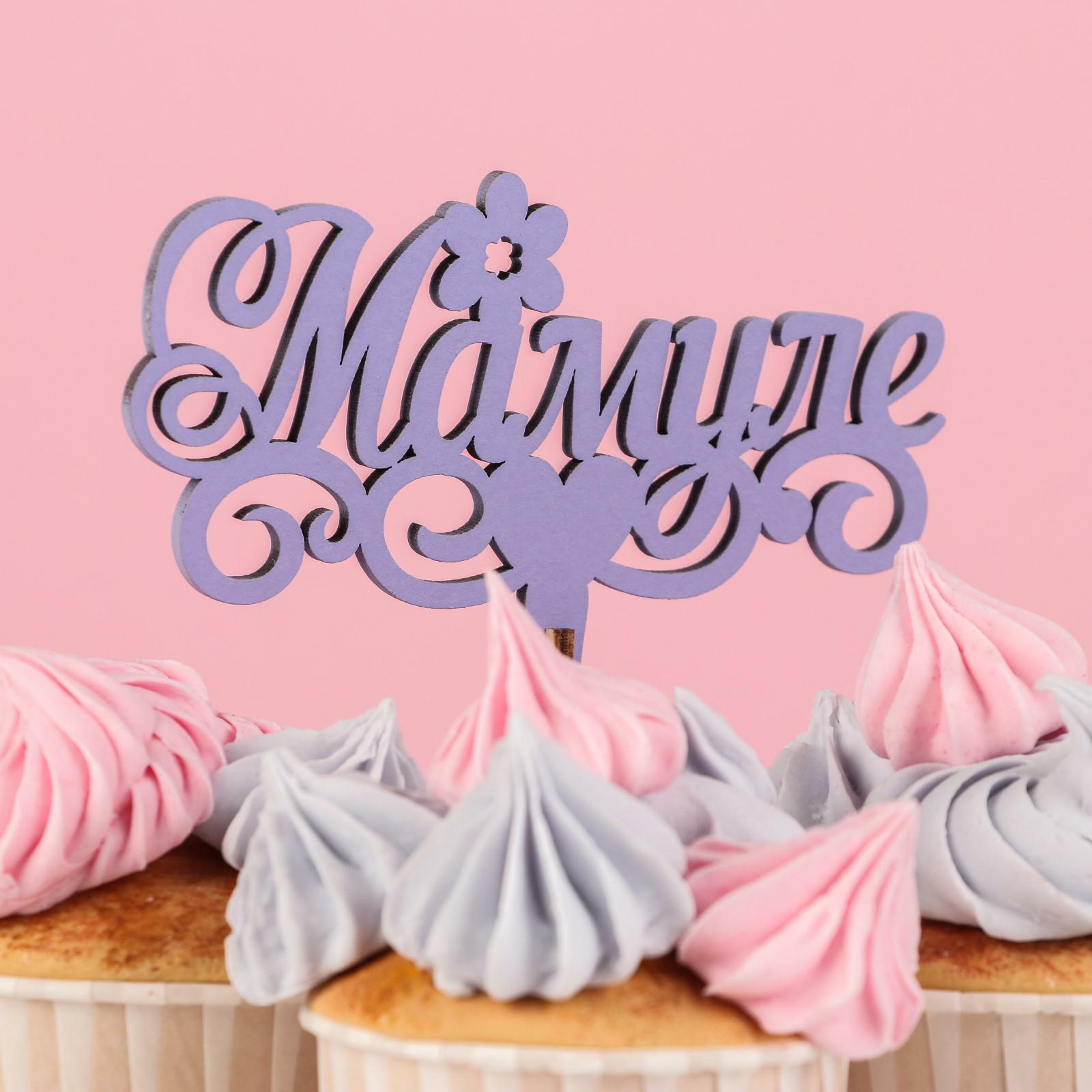 Топпер деревянный "Мамуле, цветочек, сердце", лавандовый