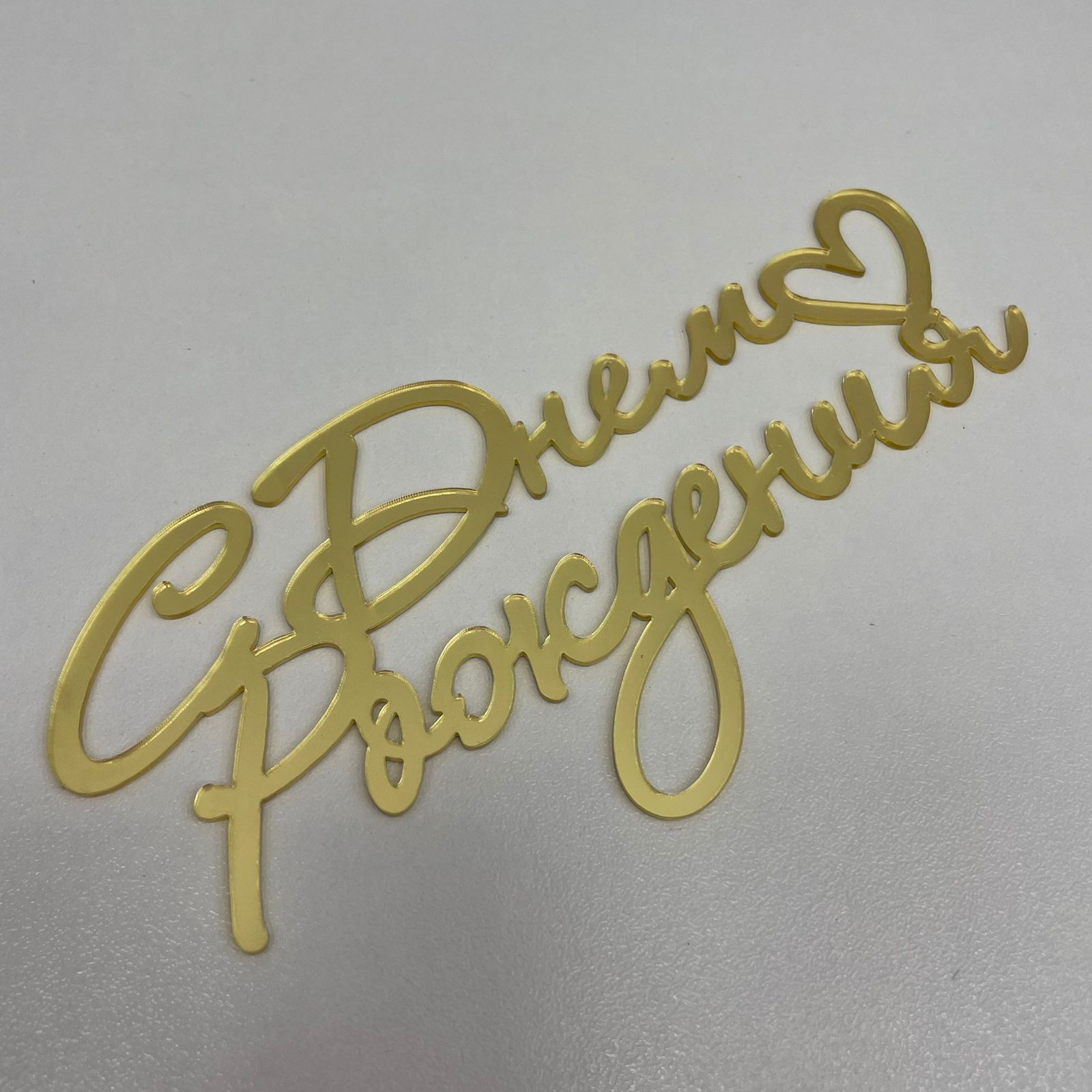 Топпер боковой без палочки С Днем рождения маленькое сердце. Размер топпера: 14 х 7 см. ВАЖНО! Топпер покрыт прозрачной пленкой с двух сторон