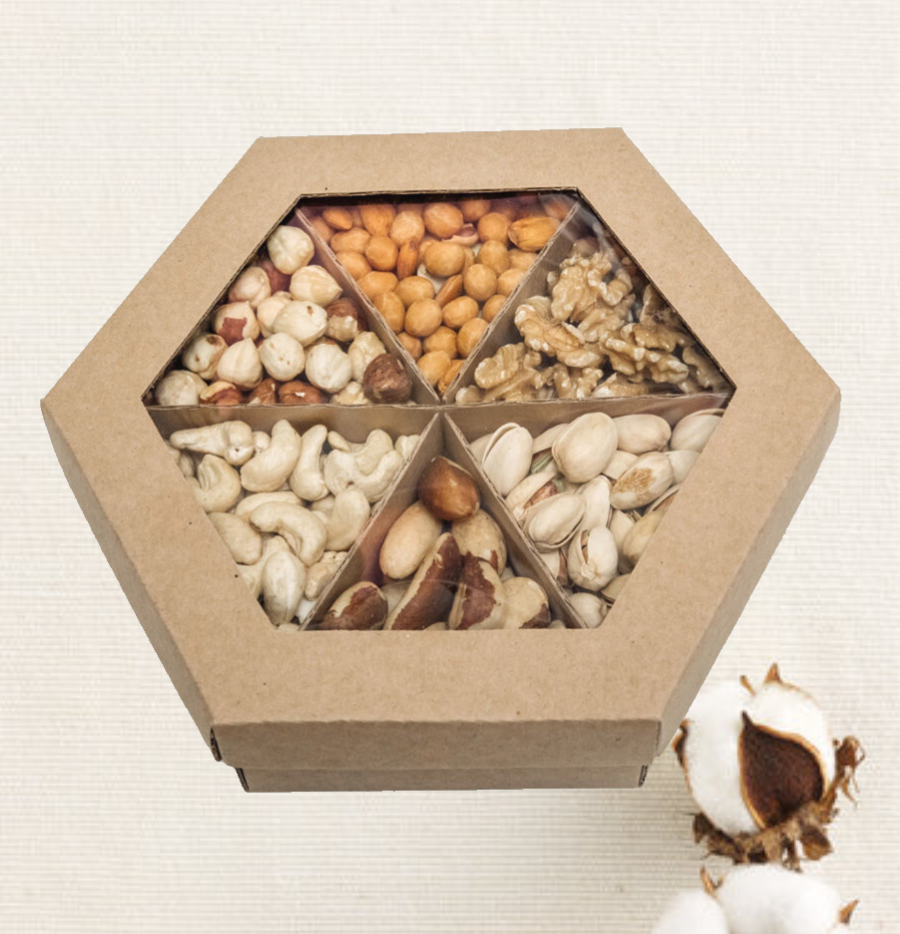 Коробка для орехов, сухофруктов, драже и т.д. Упаковка с ячейками для чая и драже. Менажница