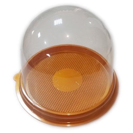 Высота купола 8 см. Круглая пластиковая прозрачная коробочка с золотым дном для шоколадных фигурок, шаров, зефира, орехов. Может использоваться как упаковка для пирожного, коробка для подарка, мыла