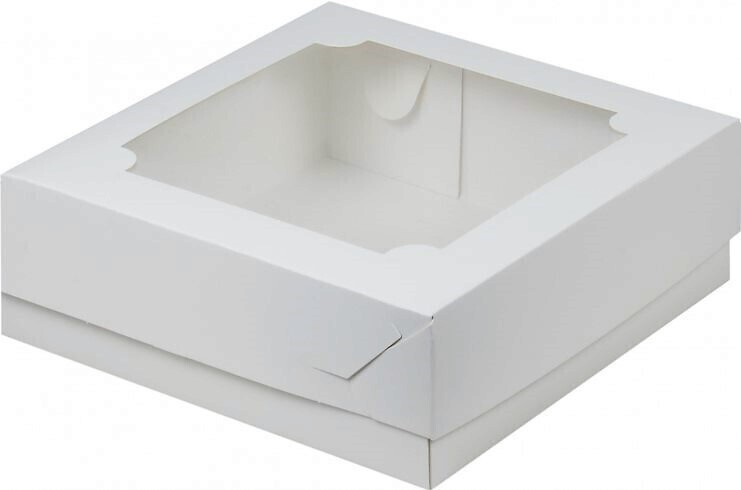 Упаковка под зефир с окошком цельная 200*200*70 мм (белая)